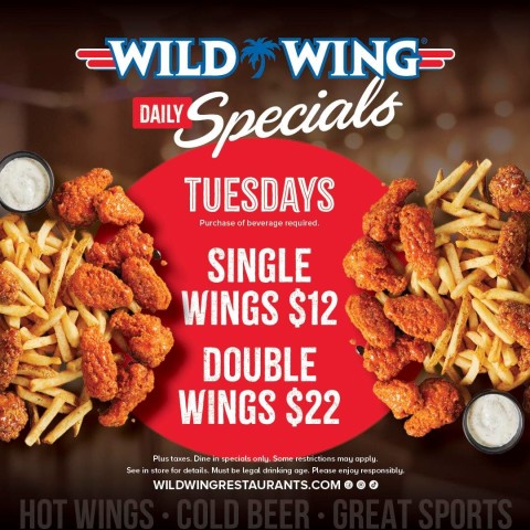 Twelve bucks, endless flavor! Join us for $12 wing singles every Tuesday at Wild Wing. Your taste buds will thank you! 😋🍗