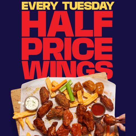 1/2 Price Wings every Tuesday from 5pm-Close with the purchase of a beverage