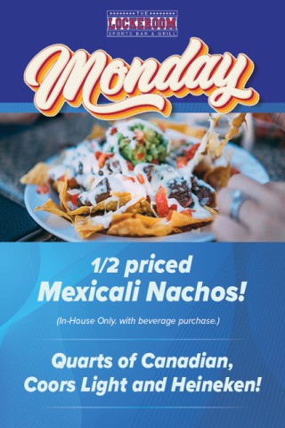1/2 priced Mexicali Nachos! - Quarts of Canadian, Coors Light, and Heineken!