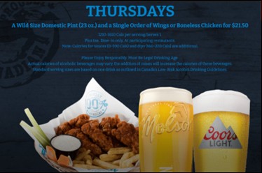 A Wild Size Domestic Pint (23 oz.) and a Single Order of Wings or Boneless Chicken for $21.50